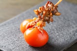 佐賀県産「みつせ鶏」を使用したこちらの部位。セセリは鶏の後頭部に位置し、1.5~2羽から串1本分しか取れない希少な部位です。「まつもと」ではこちらのセセリを4.3%の塩水につけた後、1日干すことにより旨味を凝縮。口に入れた瞬間、鶏の旨味が口の中いっぱいに広がります。