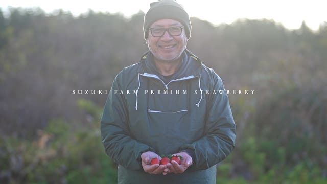 すゞき農園の「大山の天然水いちご」は、名峰「大山」の天然水をふんだんに使ったいちごです。すゞき農園の鈴木さんが毎朝、厳選したいちごだけを朝採り。「いちご本来の甘さ」「温度調整しすぎず、じっくり甘さを育てる」「ミツバチにも人にもやさしい栽培方法」など、一粒のいちごに懸ける想いと工夫を感じていただければと思います。