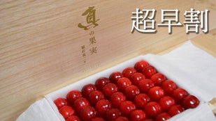 松栗の中でも、大きさ、甘さ、色付きの三拍子揃った厳選された極上のさくらんぼだけを、一粒一粒丁寧に桐箱にお詰めします。とても希少な商品となっております。