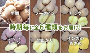 ひとつひとつ手で収穫したじゃがいも6種類を2品種ずつ5キロを3回に分けてお届けします。