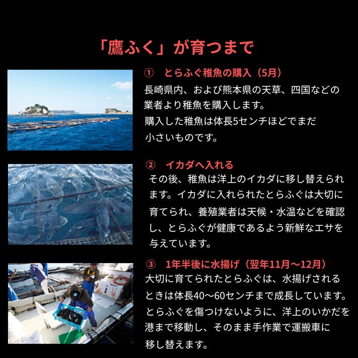 とらふぐやひらまさといった魚たちは、地元の海で大切に育てられ、
