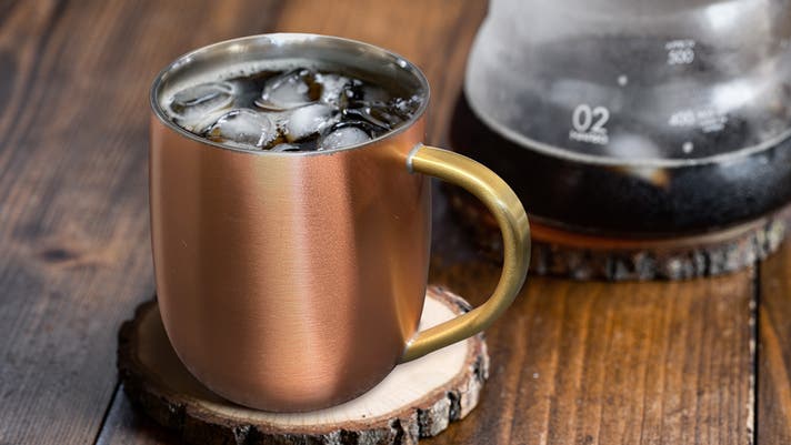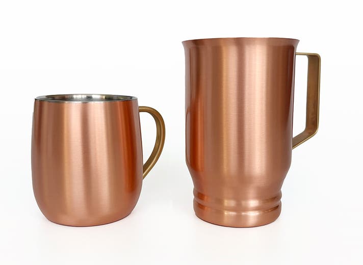 ビールやコーヒー用によく使用される銅製マグカップは、冷たい飲み物を注ぐと器もキンキンに冷え、清涼感を味わえます。