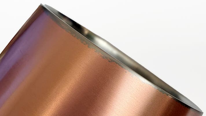 ステンレスと銅を溶接しておりますので、溶接面(飲み口あたり)に写真のように溶接跡がございます。使用上の問題はございませんのでご安心ください。