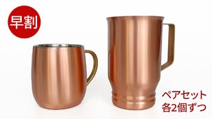 ビールやコーヒー用によく使用される銅製マグカップは、冷たい飲み物を注ぐと器もキンキンに冷え、清涼感を味わえます。
