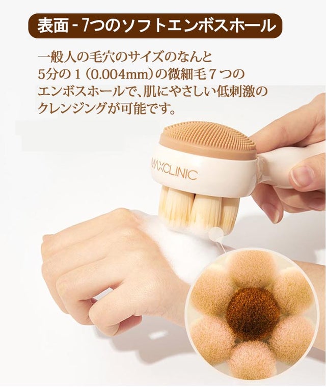 『マックスブラシ』の超微細毛は、手では触れられない微細な毛穴の間までしっかりとディープクレンジングできるようサポートします。毎日の洗顔時に顔の角質や皮脂、黒ずみをケアしましょう!