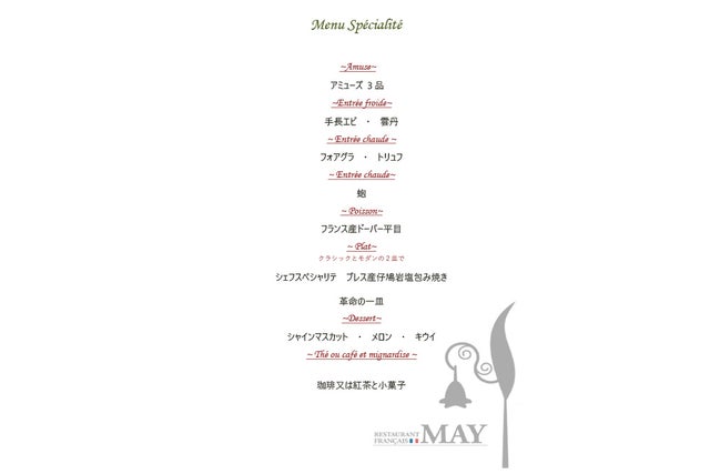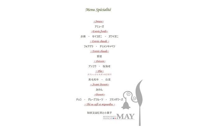 1. Dinner Menu MAY (通常税サ込価格:12,100円)