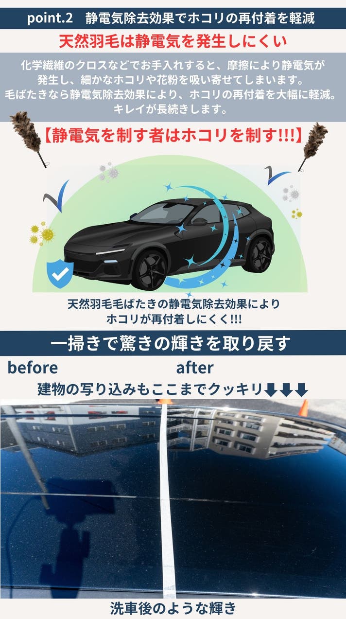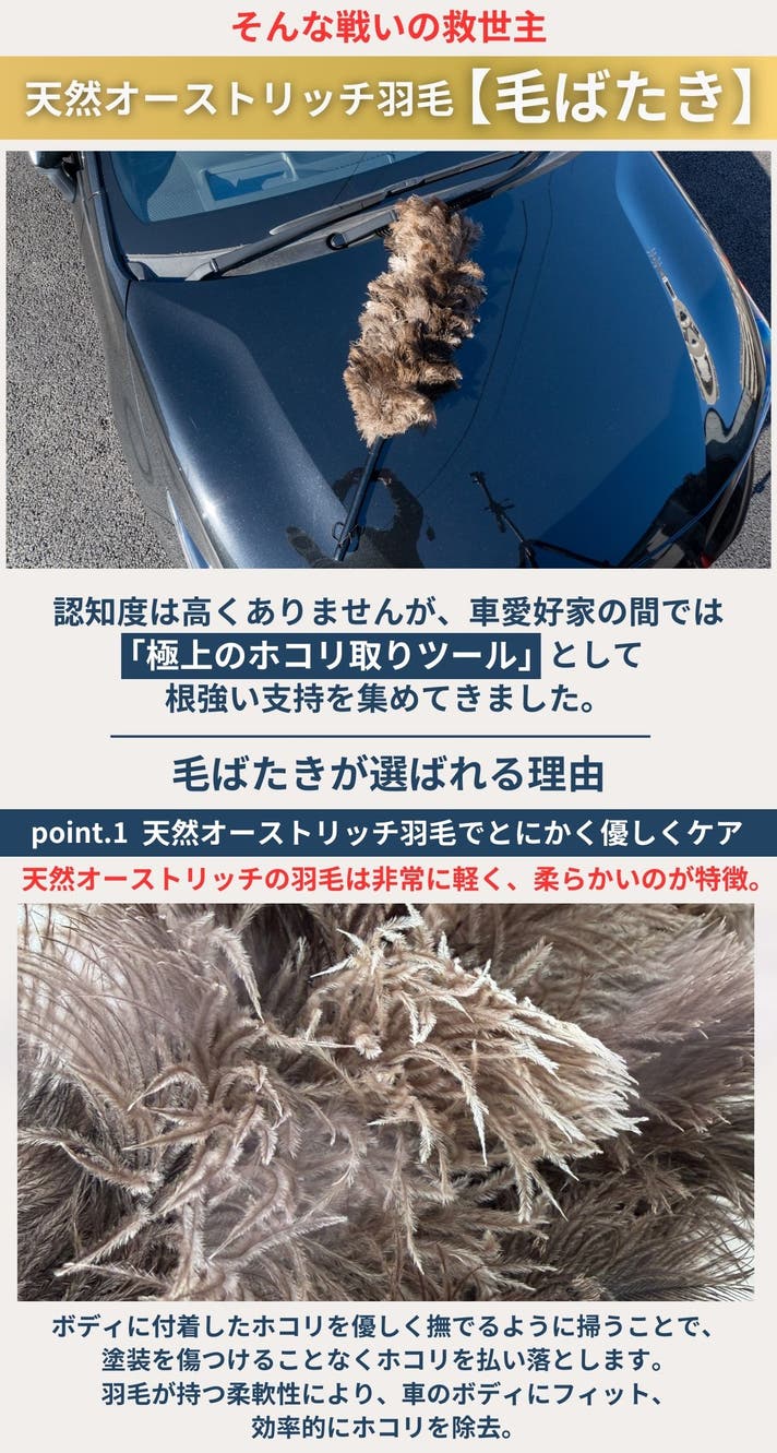 - ホコリも花粉もしなやかにキャッチ!新感覚の毛ばたきで洗車したての輝きをキープ