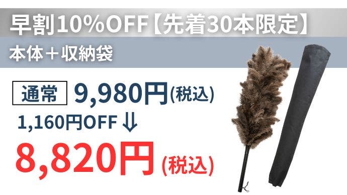 Makuakeにて応援購入頂いた方皆様に、毛ばたき収納袋を一緒にお届け致します。