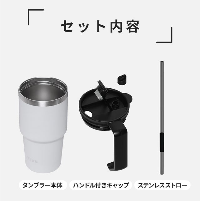 WE KLEAN大容量ストロータンブラーは、キャップを開けるとステンレス製のストローが飛び出します。いつでも温度をキープした飲み物を、持ちやすい取っ手付きで楽しめる大容量タンブラーです。