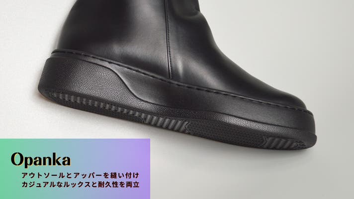 アウトソールとアッパーをぐるりと縫い付けるオパンケ加工を施すことにより、カジュアルかつタフに仕上げました。