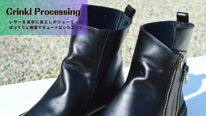 - レザーなのにソフトでカジュアルな国産ブーツ!くしゃっとキュートなクリンクル加工が魅惑のシェイプ