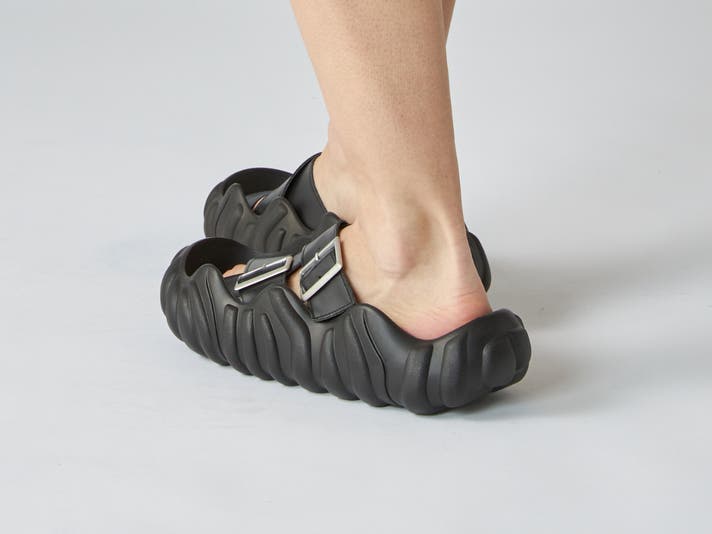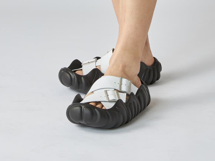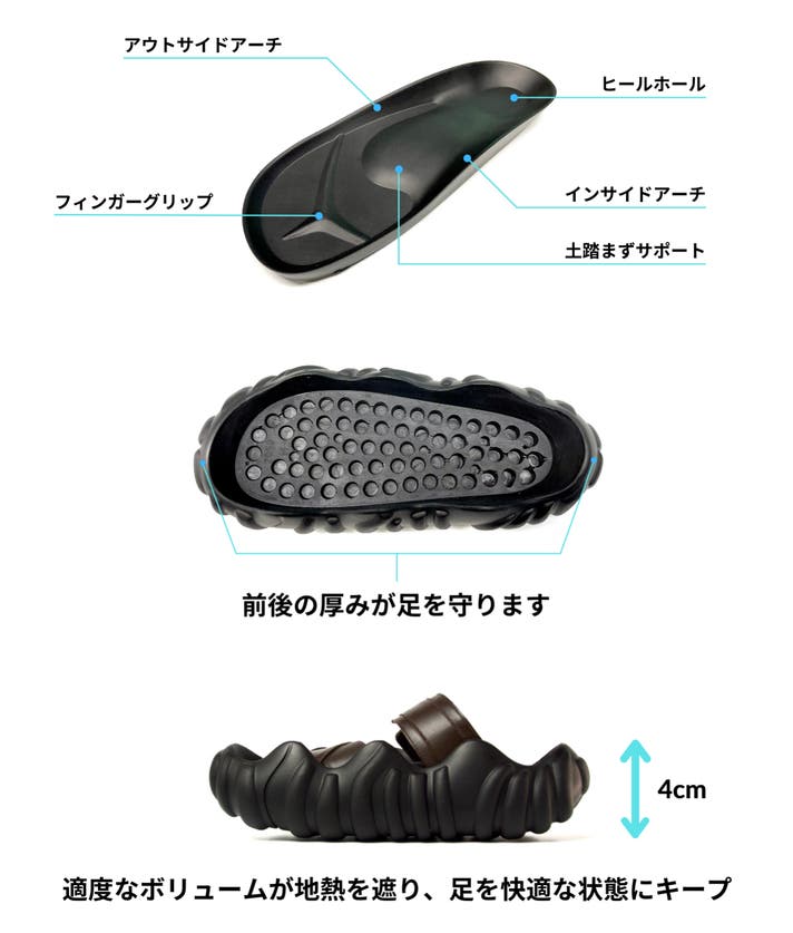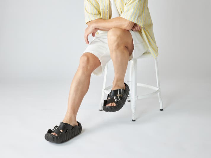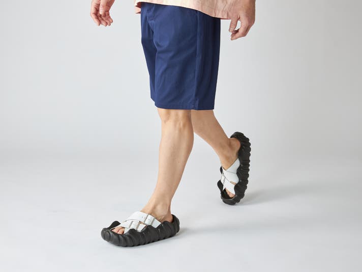 2層構造ならではのボリュームと、スニーカーの様な履き心地が足元にまだ見ぬ驚きをもたらします。気軽なサンダルでありながら軽やかなスニーカーの様に、まるで足の裏からダイレクトに歩行を支えられている感覚を実現しました。