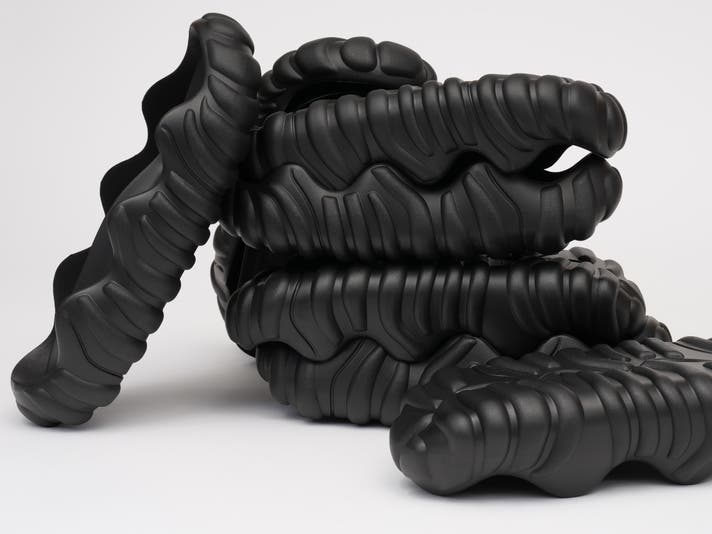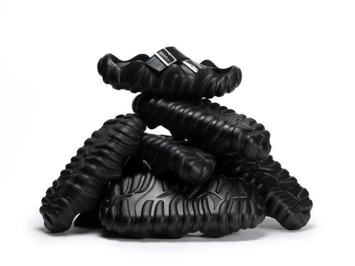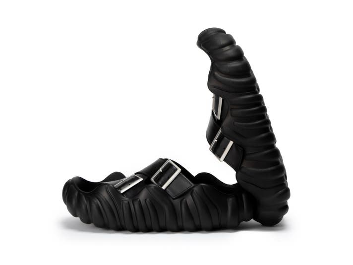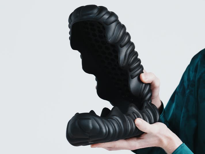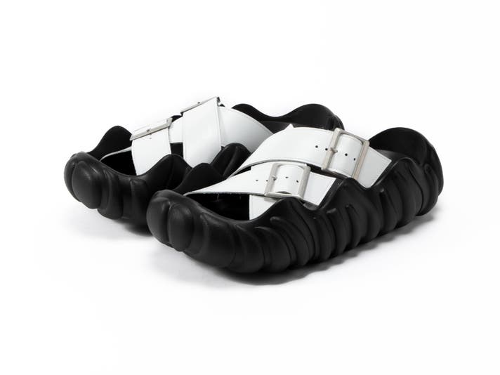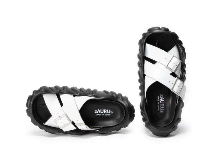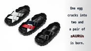 遥か古代を生きた恐竜をモチーフに、機能性とルックスをトレースしたザウルスソール。卵がふたつに割れ、1足のシューズへと生まれ変わるイメージを具現化し、一目で恐竜を彷彿とさせるデザインが完成しました。