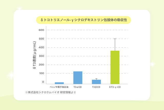 ②さらに、δトコトリエノールにシクロデキストリン包接体技術を使うことで吸収性を追求!