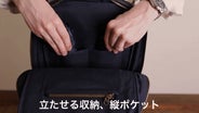 さらにこの縦ポケットは、ビジネスシーンでよく使う小物類の“定位置”として活躍します。ポケットの位置が身体の自然な動作と一致しているため、リュックを完全に降ろさなくてもアクセスしやすい。名刺交換の前、改札前、エレベーター待ちのちょっとしたタイミングに、手間なく物が出し入れできるのは、日常のストレスを静かに減らしてくれます。