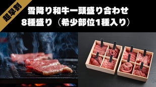 雪降り和牛尾花沢一頭盛り合わせ8種盛りセット(希少部位1種)/14,950円→【超早割】13,000円