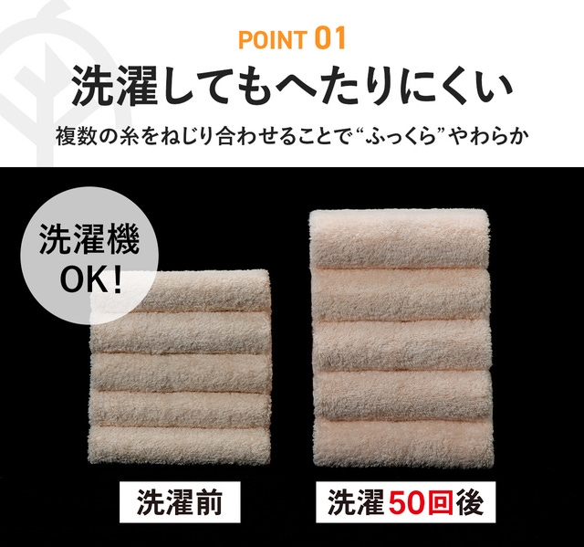 しかも、50回洗濯してもこの通り!ふんわりが長持ちします。