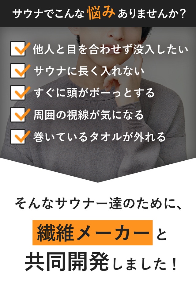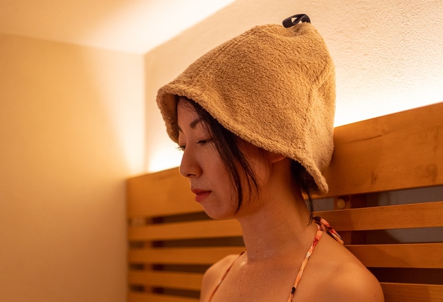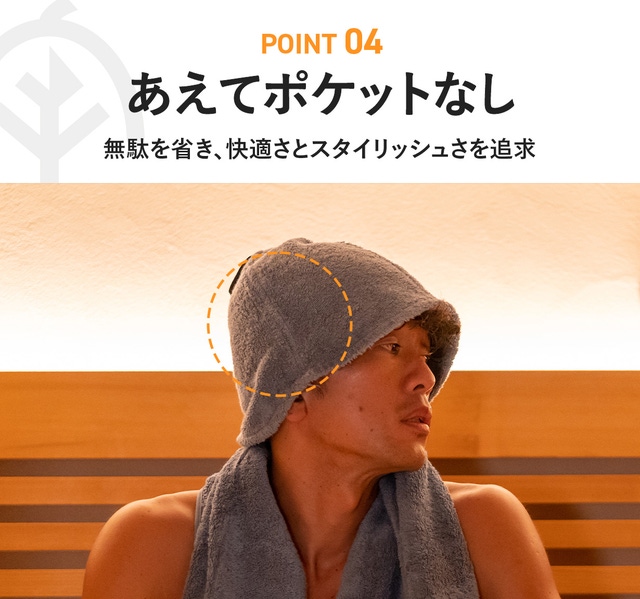 さらに目深に被って、周囲との視線をシャットアウトすれば、よりサウナに集中することができます。