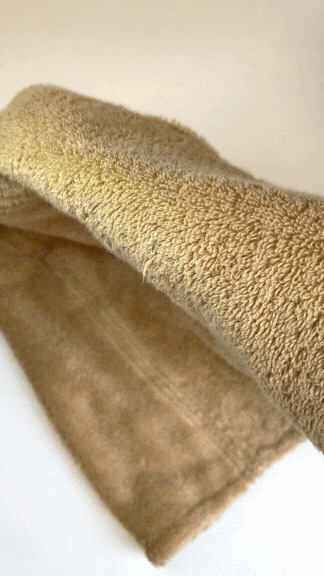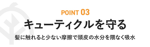 ふっくらと起き上がった糸が髪に触れると少ない摩擦で頭皮の水分を隈なく吸水し、キューティクルをダメージから守ります。