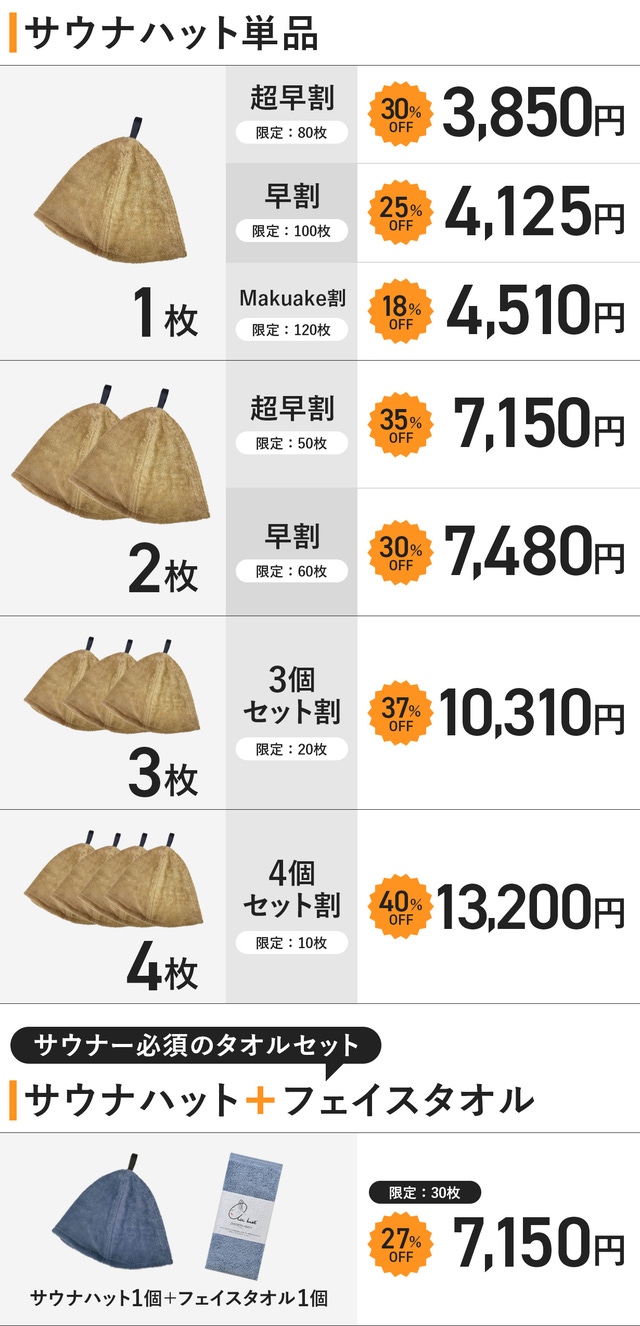 【早割】サウナハット1個セット 限定110個 25%OFF