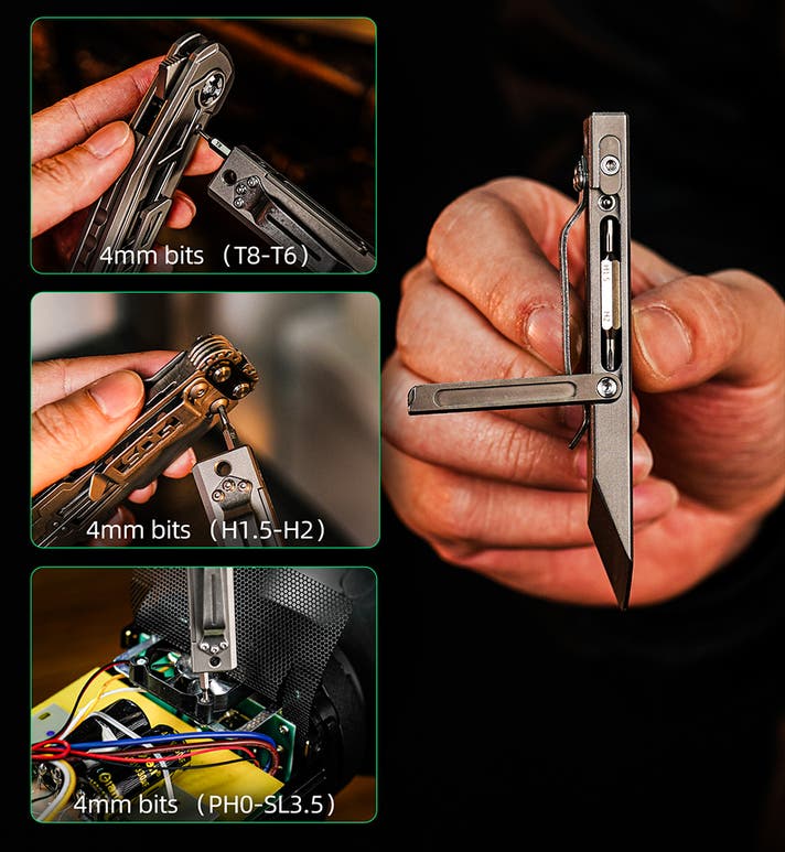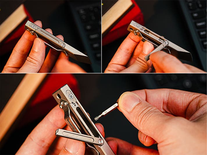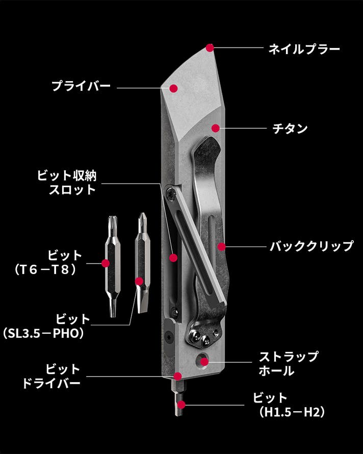 A. チタン製の多機能EDC(Every Day Carry)ツールです。プライバー、ドライバー、栓抜きなどの機能を備え、見た目にも美しい高級感が魅力のギアです。