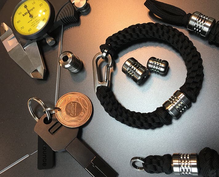 チタン製「FFX」は、ギアのアクセントとしてはもちろん、ロープに通してブレスレットとしても活用可能。