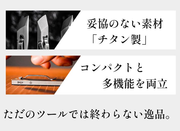 「Makuake(マクアケ)」は、実行者の想いを応援購入によって実現するアタラシイものやサービスのプラットフォームです。このページは、 プロダクトカテゴリの 「ただのマルチツールじゃない!フルチタン製の高級感、所有欲にこだわった完成形。」プロジェクト詳細ページです。