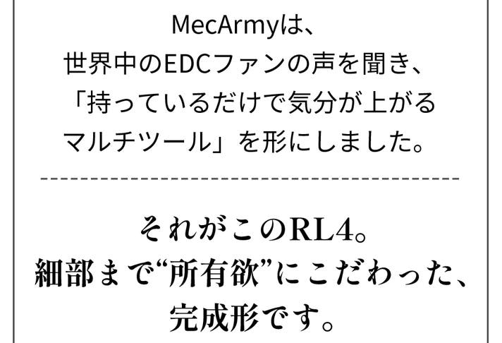 A. 機能性だけでなく、素材・デザイン・所有感にこだわっているのがRL4の魅力です。無骨なフォルムとプレミアムな手触りは、ただの「便利」では終わらない、「男心をくすぐる素材感」「見せたくなる所有欲」が他と一線を画します。