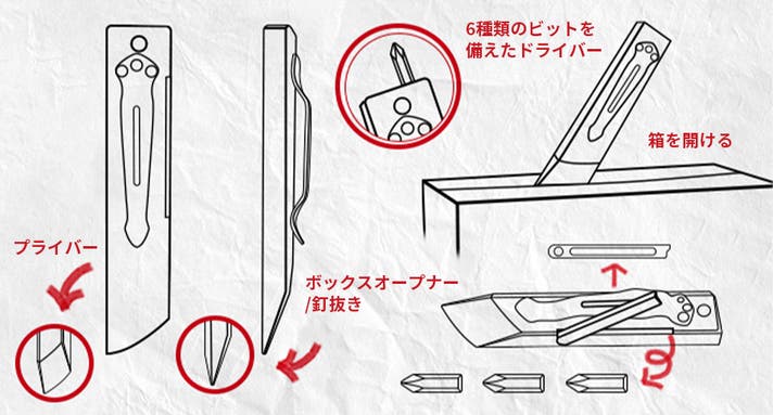 主な機能 プライバー/ドライバー(6種類のビット)/ボックスオープナー