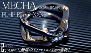 \機械式メカニカルジュエリー/ダイヤモンドリングの特徴は、今回発表の「プロトタイプ:R3WP-XXX1」も同じくダイヤモンドの取り付け方法(セッティング方法)の独自性に在ります。ダイヤモンドを3D空間に留め置く独特なセッティング方法です。ダイヤモンドキューレットをご存知でしょうか?ダイヤモンドの下部の尖り切った先端部分の事を意味します。一般では見る事が出来ないこのダイヤモンドキューレットを『プロトタイプ\PROTO-R3WP-XXX1/機械式メカニカルジュエリー』では360度どの方向からも眺める事が出来ます。このようなダイヤモンドの見せ方は他社製品では指輪の強度的にも制作は難しいです。