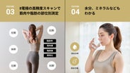 - 【精密8電極スキャン&全身分析】 筋肉・脂肪・水分バランスを細かく測定し、ボディメイクを最適化