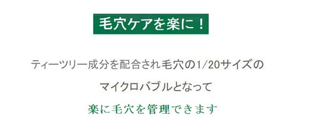 - 毛穴より20倍小さい100%オーガニックマイクロティーツリーバブルで2万個の毛穴の中を掃除し!