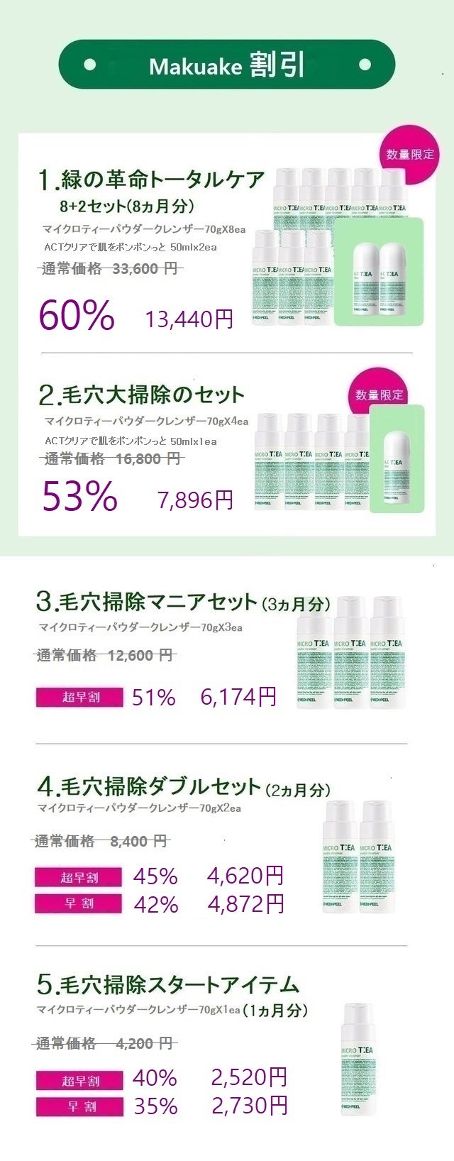 完成品X 8個一般販売予定価格 33,600円 60%割引 + ACTクリアで肌をポンポンっと鎮静 50mlx2ea