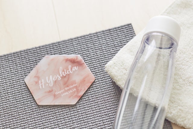・名入れコースター:名前、メッセージ、日付の彫刻が可能