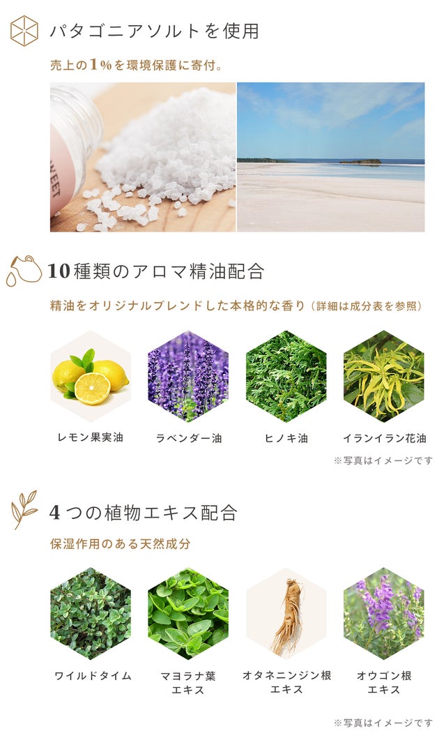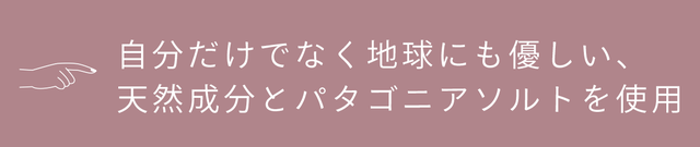 - 自分だけでなく地球にも優しい、天然成分とパタゴニアソルトを使用