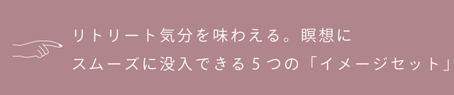 - リトリート気分を味わえる。瞑想にスムーズに没入できる5つの「イメージセット」