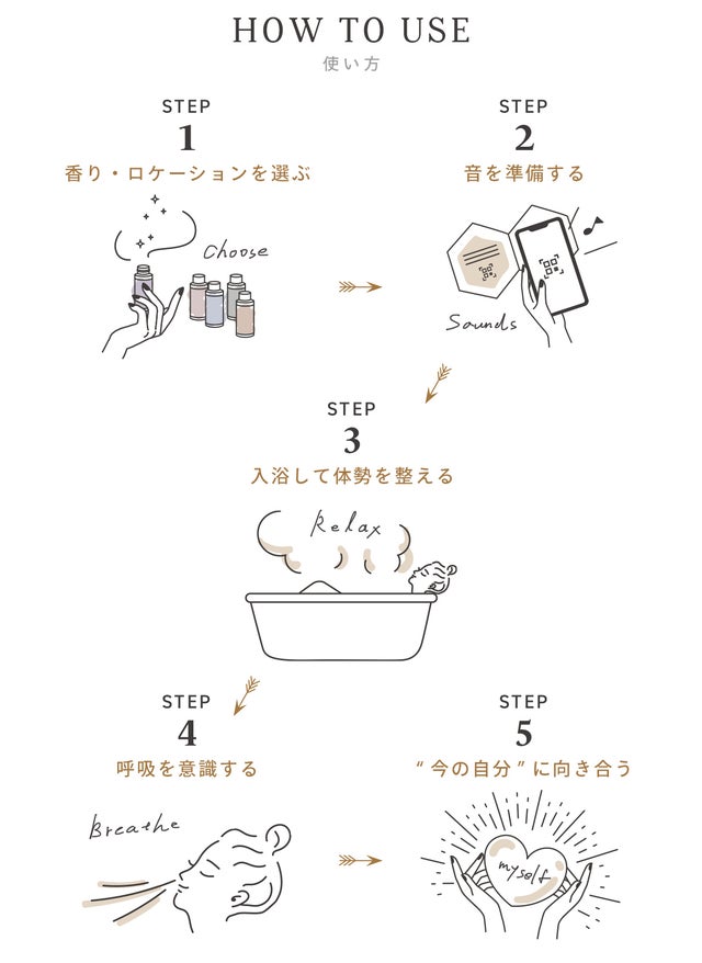 1人になれる入浴時間に、忙しい日常から離れ自分に向き合う時間を作って欲しい……そんな想いからこのバスソルトキットは誕生しました。