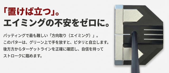 エイミングの革命: パターが単独で自立するため、後方からラインを確認可能。「向きが合っているか不安」という最大のストレスを解消します。