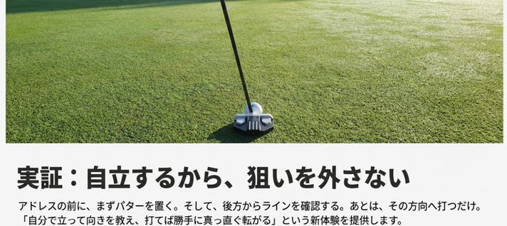 - 自立式で正確なアライメントが可能。パターの基本であるライ角通りのアドレスが毎回でき再現性向上。