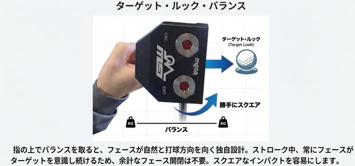 「MEGA ESS (イージースイングシステム) ゼログラビティパター」は、無重力コンセプトに基づき、驚異的な安定感を実現しました。