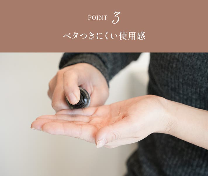 A. ベタつきにくい使用感にこだわっています。朝の支度中でも使いやすいよう設計しています。 ※使用感には個人差があります。