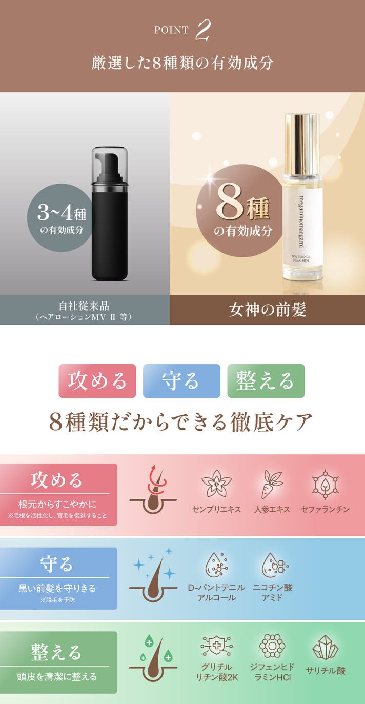 「女神の前髪」は、頭皮環境にやさしくアプローチする “頭皮美容液”(医薬部外品)です。