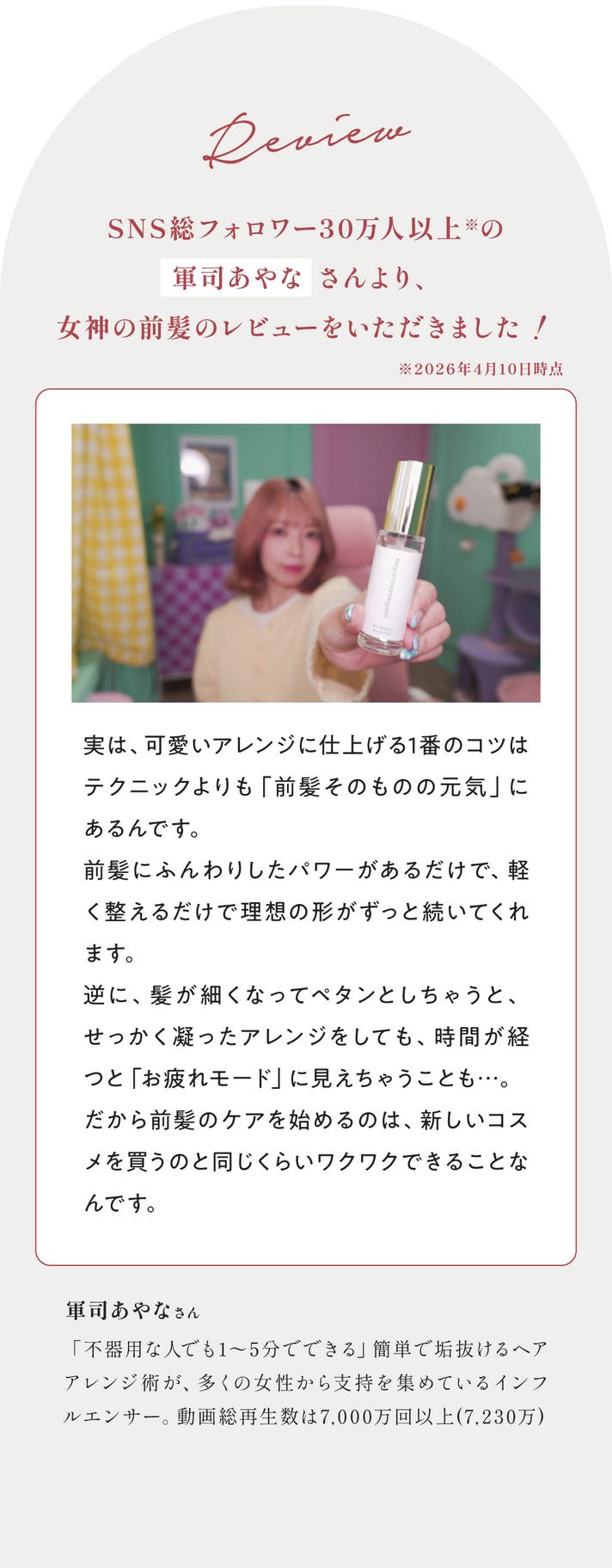 女神の前髪はベタつきにくく、朝の支度の流れを止めません。