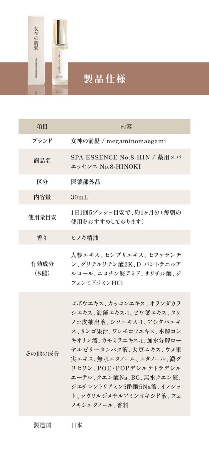 女神の前髪は、清潔感のあるウッディなヒノキ精油の香り。