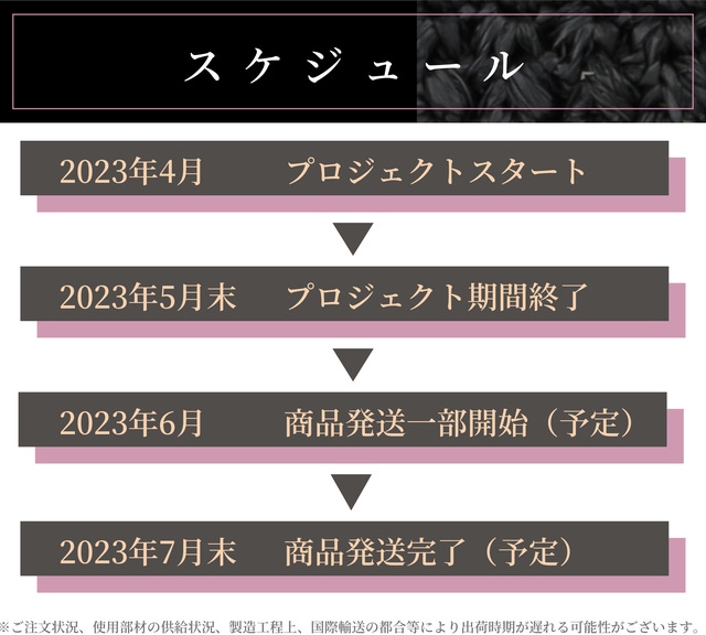 このプロジェクトはAll in型です。目標金額の達成に関わらず、プロジェクト終了日の2023年05月30日までに支払いを完了した時点で購入が成立します。