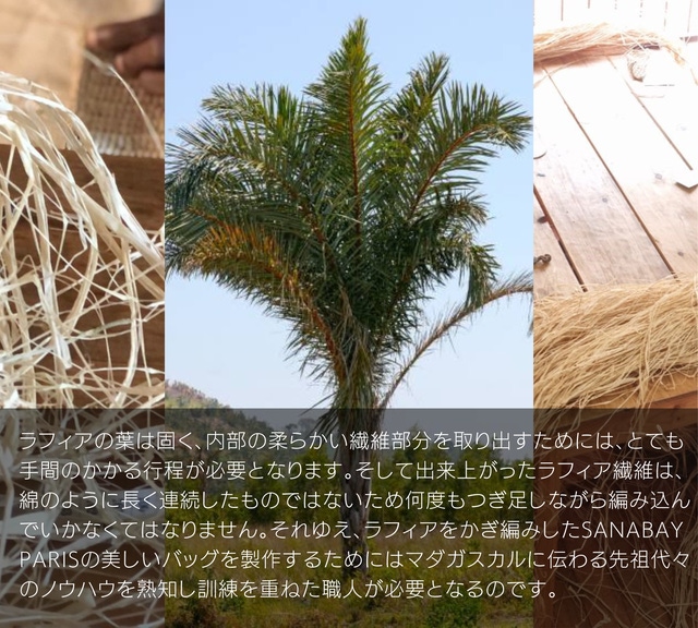 その中でもマダガスカルのラフィアは高品質で世界的に評判が高く、高級ブランドのバッグや帽子にも使用されています。