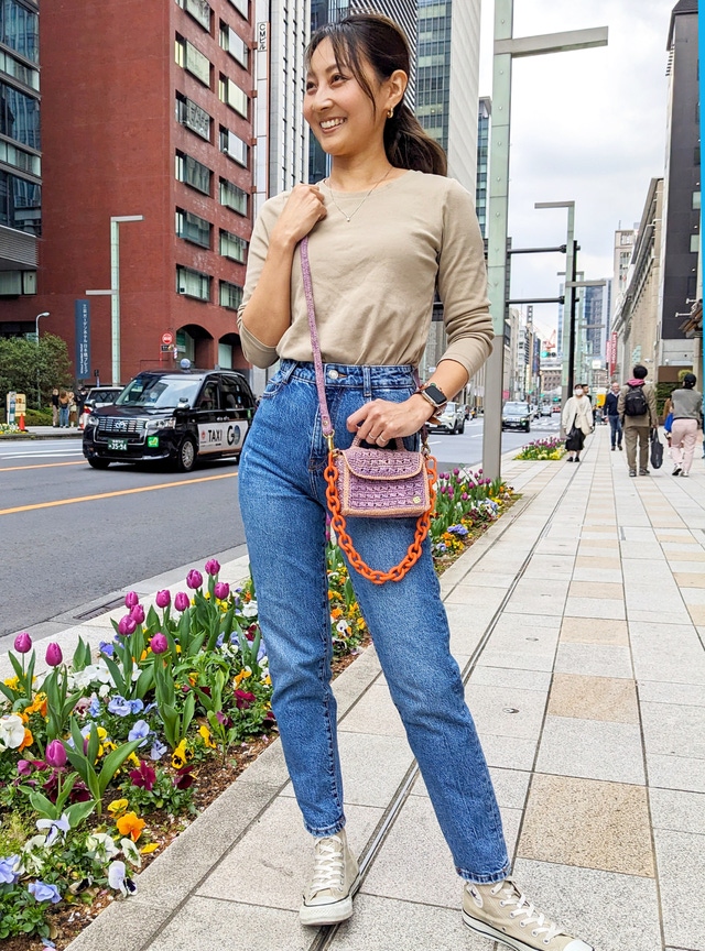 夏のイメージのかごバッグですが、SANABAYは季節を問わずオールシーズン活躍できるバッグです。カジュアルスタイルにもきちんとした服装にも合わせやすいため、日常的に活躍します。