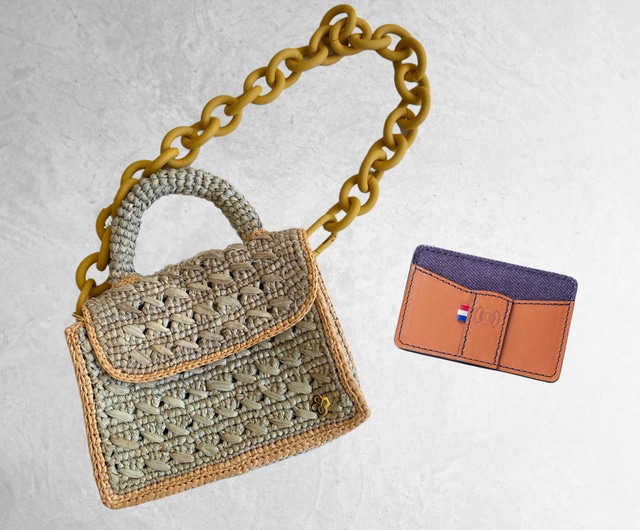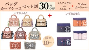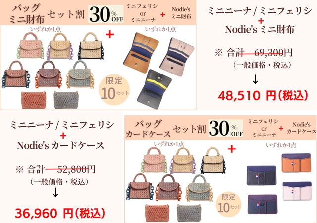 今回このかわいいミニバッグと一緒に使っていただけるフランスの革製品ブランド、Nodie'sのミニ財布、カードケースとのセットも特別にご用意しました。