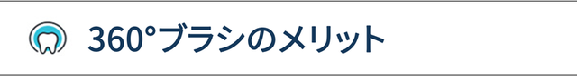 プラーク(歯垢)を除去する一番効果的な方法は歯に歯ブラシを45°に傾けて当てて、こまめに動かしながら磨くことだと言われています。しかし、一般の歯ブラシを歯や歯と歯茎の間を45°に傾けて当てるとブラシのほんの一部しか当たらないため、プラークを除去するのが効果的ではありません。360°の歯ブラシは歯ブラシを45°に傾けなくても歯と歯茎を全角度から磨くため、効果的に歯を磨くことが出来ます。