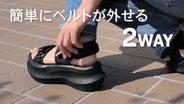 【POINT04】ワンタッチで踵のベルトが外せる2WAYタイプ。ベルトを付ければスポサンに、ベルトを外せばスリッパとして使えます。